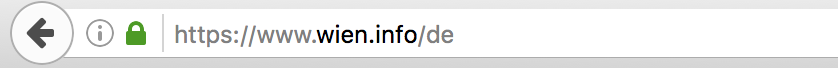 Eine Seite die verschlüsselt zu erreichen ist erkennt man daran, dass vor der Domain ein https statt http steht. Die meisten Browser zeigen außerdem ein grünes Schloss links in der Browserleiste: