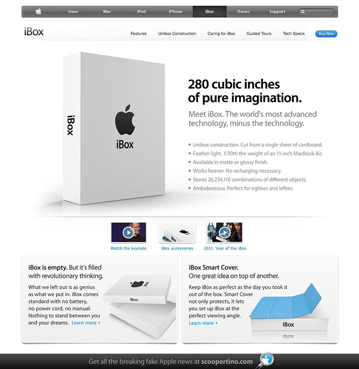 Wer schon immer einmal vom täglichen Unboxing-Video träumte, sollte sich die iBox zulegen. Sie hat zwar keinen Inhalt, dafür aber besonders viel Stauraum.