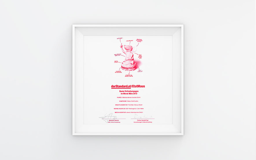 Bei der Übergabe der Etat-Maus für den Monat März freute sich das versammelte Gewinnerteam von Third Man und Adworx ganz besonders über die Auszeichnung. „Der Kunde war von den tollen Ergebnissen des Content Ad sehr positiv überrascht. Hat er früher zwanzig Mietverträge pro Monat abgeschlossen, ist diese Zahl auf 600 seit dem Kampagnenstart gestiegen“, erzählte Dani Waller, Etat Director der EEP Werbeagentur, von der Kundenreaktion.