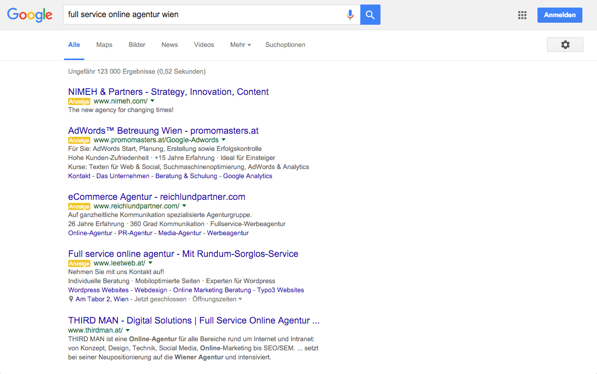 Denn besonders bei weniger hochauflösenden Displays kann es sein, dass bereits die organische Position #2 nicht mehr above-the-fold, also im sichtbaren Bereich ohne scrollen, liegt.