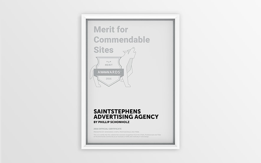 Awwwards hat unsere Arbeit für die Werbeagentur saintstephens als Beispiel für Fähigkeiten & Kreativität im Web Design geehrt.