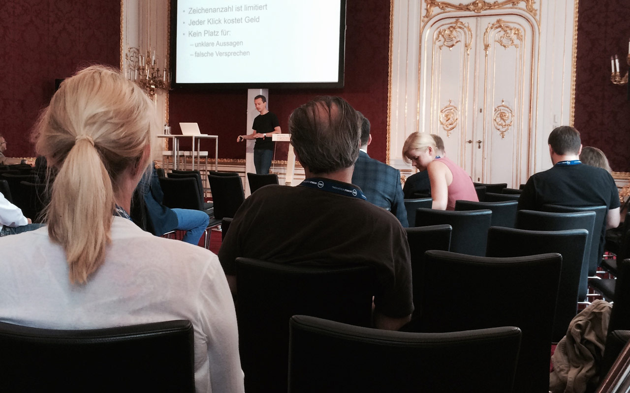 THIRD MAN Suchmaschinenmarketing Experte Thomas Kloos sprach am Donnerstag 1.Juli 2015 auf dem Werbeplanung.at Summit in Wien über die Anzeige als zentrales Element jeder Google AdWords-Kampagne.